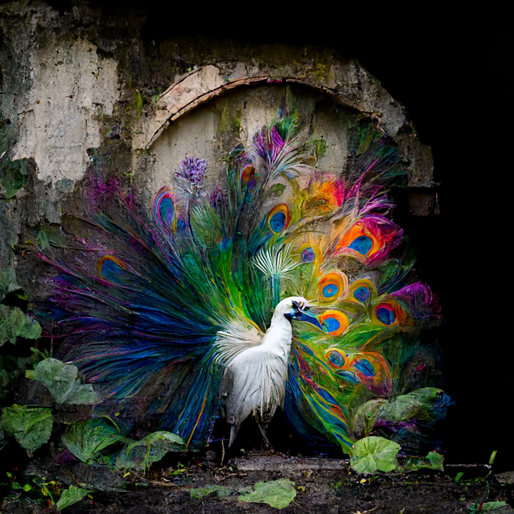 Mein Idee: Mein Rainbow- Peacock: Ein Pfau mit Federn in Regenbogen-Farben. Damals noch selbst fotografiert und mit Photoshop eingefärbt.