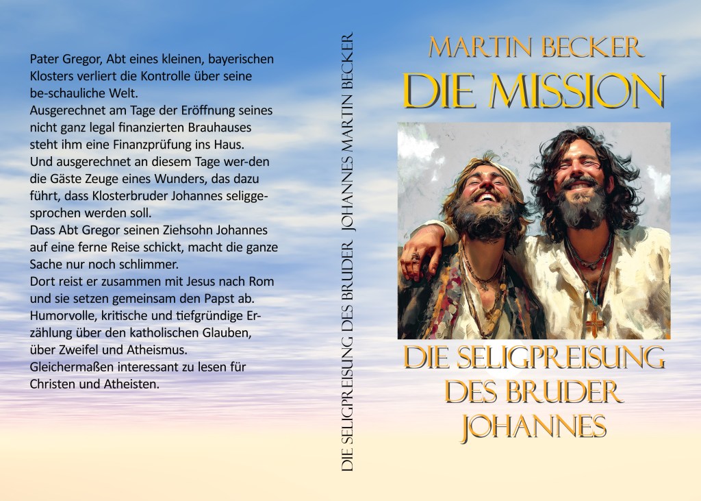 Dort reist er zusammen mit Jesus nach Rom und sie setzen gemeinsam den Papst ab. Humorvolle, kritische und tiefgründige Erzählung über den katholischen Glauben, über Zweifel und Atheismus. Gleichermaßen interessant zu lesen für Christen und Atheisten.