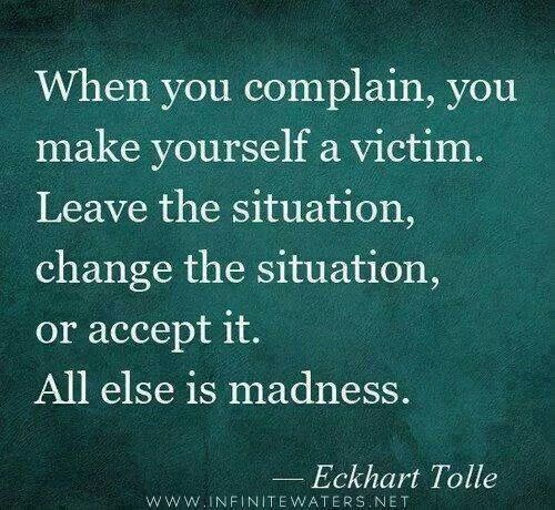 Wenn du jammerst, machst du dich selbst zum Opfer. Verlasse die Situation, ändere die Situation oder akzeptiere sie. Alles andere ist verrückt.